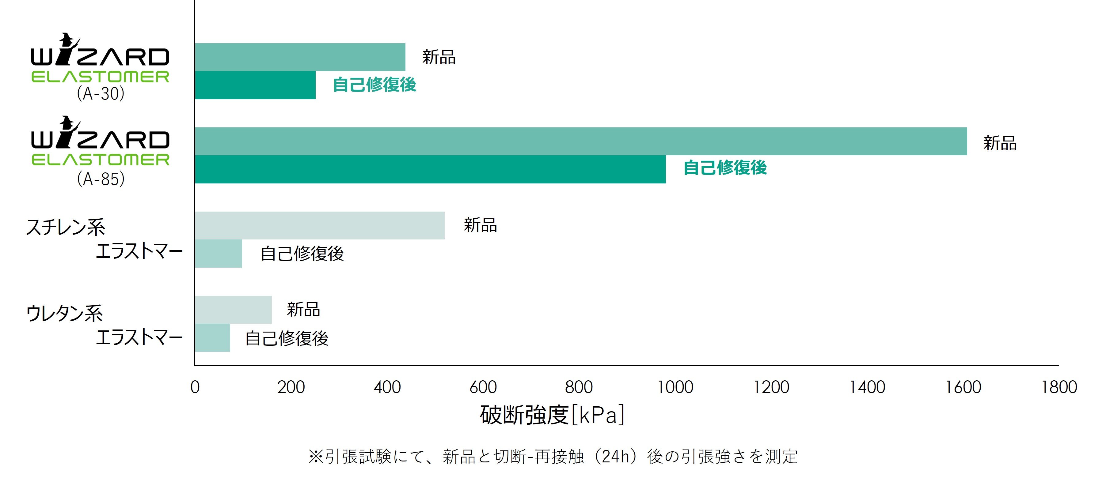 ウィザードエラストマー®の大きな特徴は「切断傷を受けても再接触させることで傷が治る」というもので、今までにはない全く新しい材料になります。